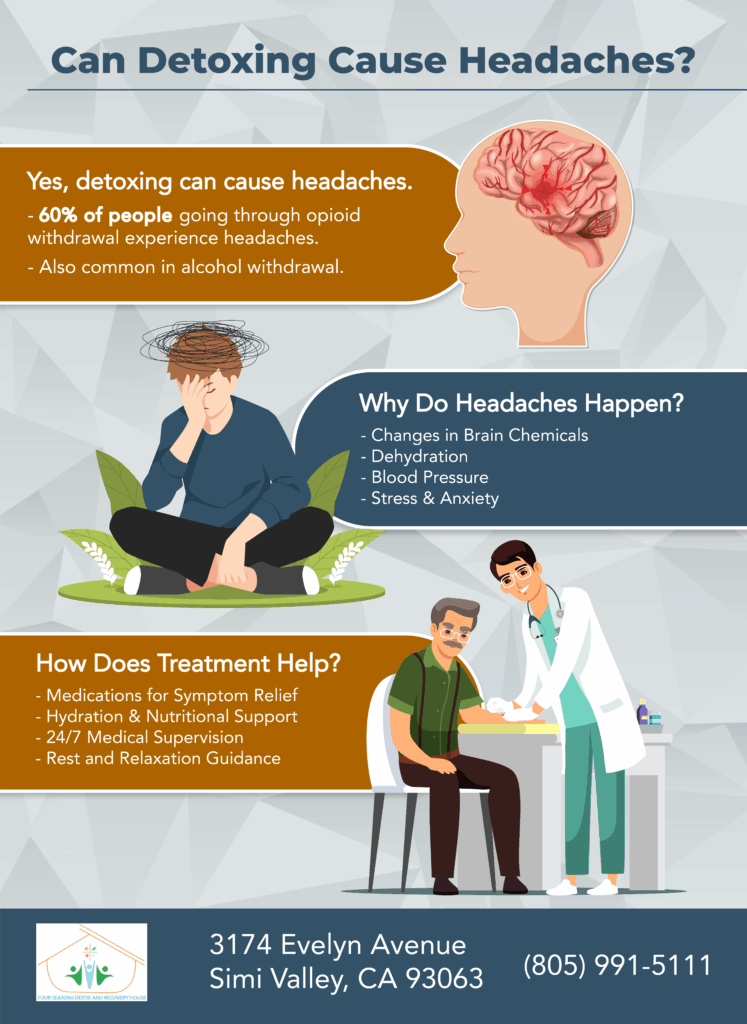 Can detoxing cause headaches? Yes, absolutely. Headaches are a very common detox symptom for people getting off various substances. For example, one study found that 60 percent of people going through opiate withdrawal have headaches, especially those with a longer history of addiction.